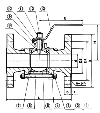 产品名称: 三片式法兰球阀 产品型号: Q41F