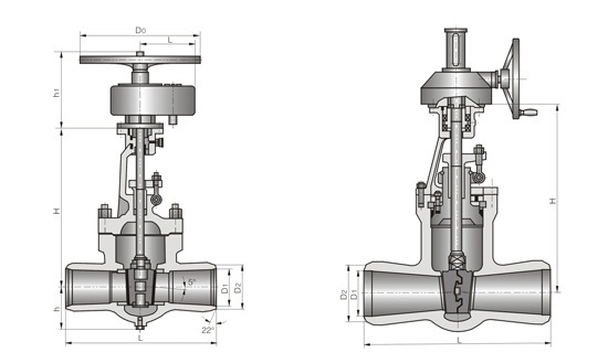 Z61H高温高压焊接闸阀有两种标准形式,一种是遵循ANSIB16.34和JISL1E101标准的引进型,另一种是按JB3595标准的国标型。其遵循的温度-压力等级是一致的,在一些管道中存在着某种互换关系。电站焊接闸阀中部采用无阀盖压力自紧式,在高温高压工况下具有良好的密封性能。