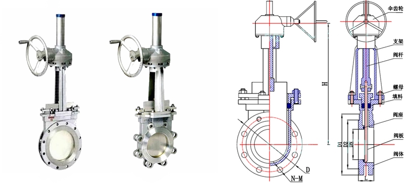 PZ573H/PZ573X伞齿轮刀形闸阀其应用范围非常广泛,从矿山、电厂的选煤、排矸、排渣,到城市的污水处理;从水泥、造纸厂的浆液输送,到食品、卫生、医药等专业管道。超薄设计的刀型闸阀以其体积小、重量轻、阻流小、不积渣,易安装,易拆卸的优点彻底解决了普通闸阀、平板闸阀、球阀、截止阀、调节阀、蝶阀等阀门的阻流大,占空间,易积渣,不易安装和维修等疑难问题。因而大量的通用切断类阀和调节型阀门被刀型闸阀取代。