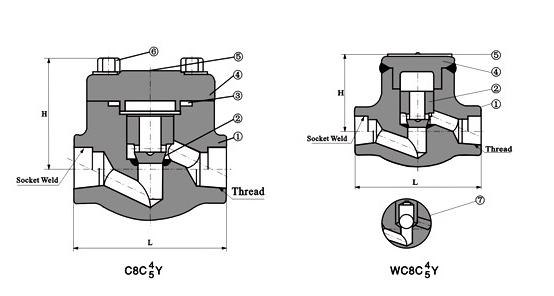 H11Y、H11H内螺纹锻钢止回阀密封面采用铁基合金或司太立(Stellite)钴基硬质合金堆焊面成耐磨、耐高温、耐腐蚀、抗擦伤性能好使用寿命长等特点。不锈钢销轴与阀瓣连接采用内装式结构-性能优良-密封更可靠。产品广泛应用于石油、化工、制药、电力行业等各种工况的管路上防介质倒流作用。适用介质为水、油品、蒸汽、气体及某些腐蚀性液体介质等。