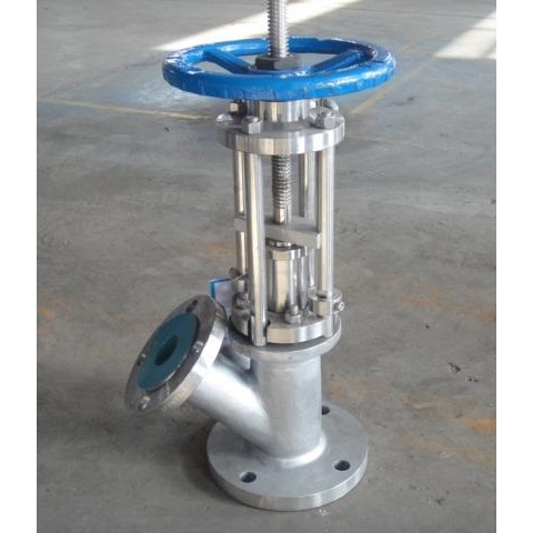 柱塞式放料阀是类似塞阀结构的斜出口形式。它的阀瓣是一柱塞,阀门开启时,柱塞形的阀瓣向下运动进入阀体和密封圈形成的空间,露出通道孔,不但使流道通畅,而且介质不易黏结在阀体内侧或柱塞(阀瓣)表面。