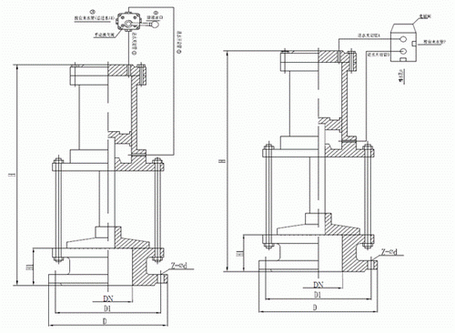 | 公称通径 | D | D1 | H | H1 | Z-φd | 进液管连接 |