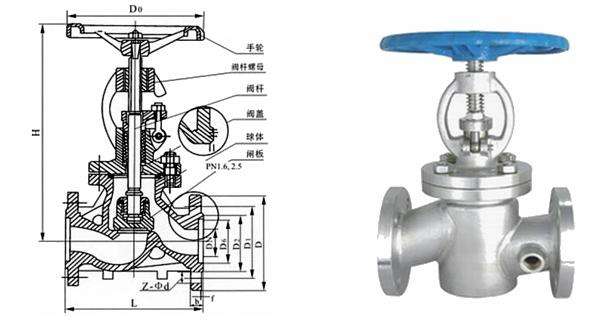 BJ41W夹套保温截止阀的保温夹套焊装于阀门的两法兰之间,阀门的侧面、底部设置有保温夹套的两个连接口。直流保温截止阀特别适用于化工、化肥行业的管路上,夹套内涵入蒸汽能防止介质结晶。广泛应用于石油、化工、冶金、制药等各类系统中,以输送常温下会凝固的高粘度介质。