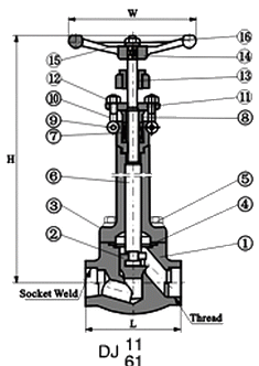 DJ61Y锻钢低温截止阀有二种阀盖设计形式。第一种是螺栓式阀盖,按这种设计形式设计的阀门,其阀体与阀盖用螺栓螺母连接,缠绕式垫片 (31 6夹柔性石墨制造)密封。客户有特殊要求时也可采用金属环连接。第二种设计形式是焊接式阀盖,按这种设计形式的阀门,其阀体与阀盖用螺纹连接,全焊密封。客户有特殊要求时也可采用全焊逶连接。闸闸、截止阀、球阀都可设计成低温阀。为了能在-196℃(320oF)的低温下使用,一般将阀门设计成加长式阀盖。