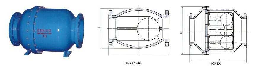 HQ44X、HQ45X型微阻球形止回阀采用橡胶包皮球为阀瓣,在介质的作用下,可在阀替内的滑道上滚动,从而打开或关闭阀门,流量大流阻损失小,密封性能好,消声关闭,可减小水击波.水平或垂直安装均可,可用于冷水、热水、工业及生活污水等管网的水泵出口,防止介质倒流。