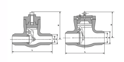 H64Y、H64H高温高压止回阀支管两端为焊结结构,焊结坡口可按标准或用户要求制作,适用于火电厂、石油化工、冶金等高温高压的水、蒸气、油品、过热蒸汽的管道上作防止介质回流的装置。一种是遵循ANSIB16.34和JIS E101标准的引进型;另一种是Jb3595标准的国标型。其遵循的温度、压力等级是一致的,在一些管道中存在着某种互换关系。中部采用无阀盖压力自紧式,在高温高压工况下具有良好的密封性能。