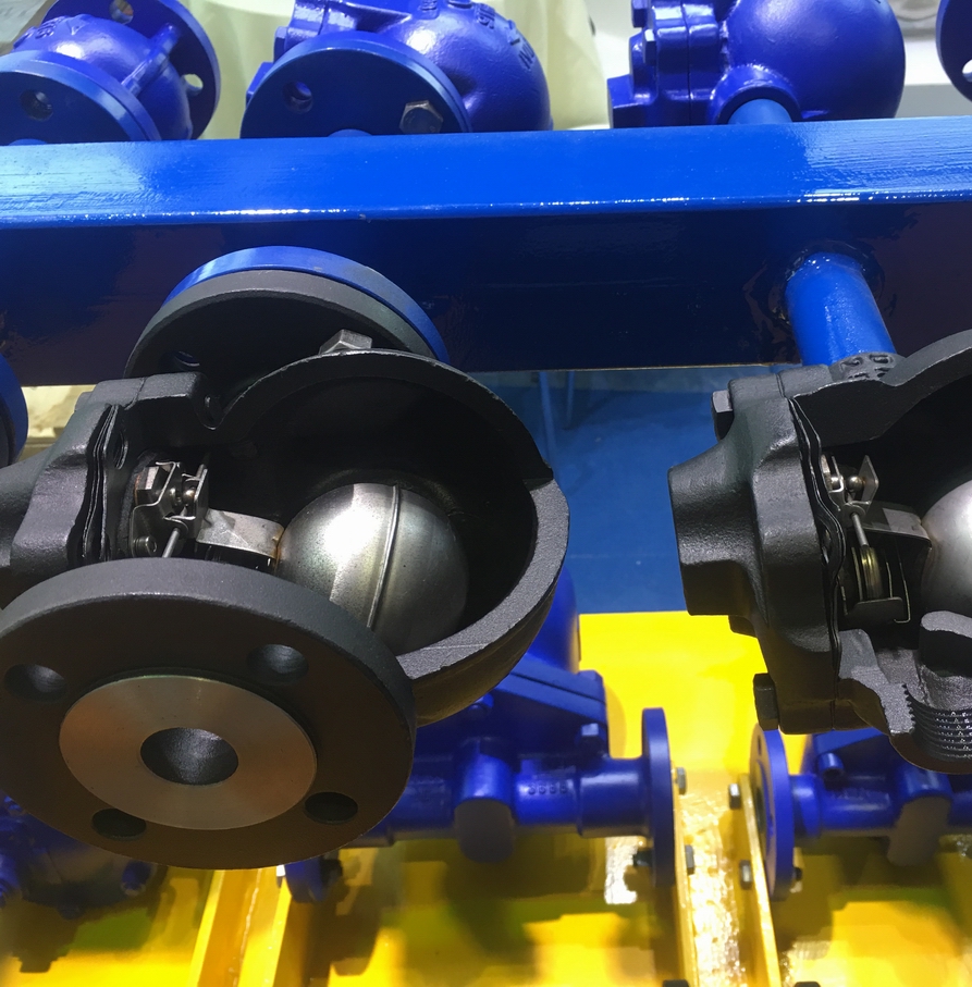 该阀刚启动时,自动排空气装置迅速排除系统中不凝结气体,当蒸汽和热凝结水进入后,阀腔内温度随着升高,排空气装置自动关闭,浮球根据凝结水水位的变化而作升降,带动杠杆调节阀座孔的开度,连续排放凝结水。当凝结水停止进入时,浮球靠自重下降,驱使杠杆带动阀芯关闭排水阀座孔。