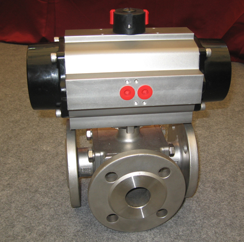 (Q44F)L型三通球阀只能连接相互正交的两条管道,不能同时保持第三条管道的相互连通,只起分配作用。T型能使三条正交的管道相互联通和切断第三条通道,起分流、合流作用。