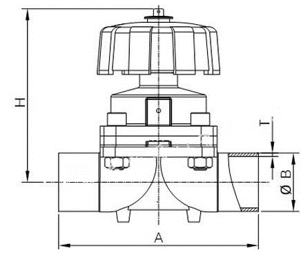 卫生级焊接隔膜阀的关闭与开启是通过来自管路的压力作用于增强橡胶隔膜实现的。当压力介质进入阀门控制腔,隔膜下压,关闭阀门通道,当控制腔压力排向大气或下游管道,隔膜上升,阀门通道被打开。阀门没有阀杆、密封垫、定向座等,通道中运动的唯一部件就是隔膜,所以不存在锈蚀及抱死现象,具有更高的稳定性。多种结构形式及控制形式,可适用于多种的流体控制需要。