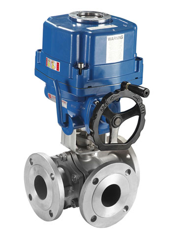 Q944F/Q945F电动三通球阀是由角行程系列智能式执行机构和三通球阀组成,是一种旋转类切断调节阀门,电动三通球阀具有关闭严密,结构紧凑,重量轻,维修方便等优点。电动三通调节球阀广泛用于气体、液体、蒸汽、油品等腐蚀性介质的管道自动化控制中。两阀座密封电动三通球阀具有结构紧凑、外型美观、密封性能好。电动三通球阀能实现对管道中介质流向的切换。也能使相互垂直的两个通道连通或关闭。四阀座密封三通球阀具有造型美观、结构紧凑合理。电动三通球阀不仅可实现介质流向的切换,也可使三个通道相互连通,现时也可关闭任一通道,使另外两个通道连通,灵活控制管路中介质的合流或分流。故称之为电动三通换向球阀。