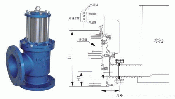 J744X液动角式排泥阀主要用于自来水公司各类水池,排除池底泥沙或污物。也可安装在工作介质为水、气、池等工业管道中作截流用。排泥阀应安装在原管线的最低点,并选用与排污水流成切线的排泥三通,还应考虑到排放过程中冲刷对附件基础的影响,排泥阀安装完毕后应及时关闭。