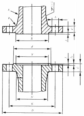 凹凸面整体铸钢管法兰(JB/T79.2-94) PN10.0MPa单位: mm