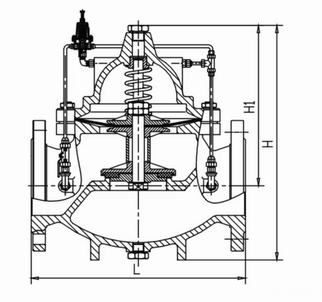 500X持压泄压阀由主阀、泄压导阀针阀、球阀、微形过滤器和压力表组成水力控制接管系统。利用水力自动操作,即可以作泄压阀用又可作持压阀用。作泄压阀用时,可维持供水路压力在设定的安全值之下;做持压阀用,可维持主阀上游水压在设定值之上,保持主阀上游供水压力。