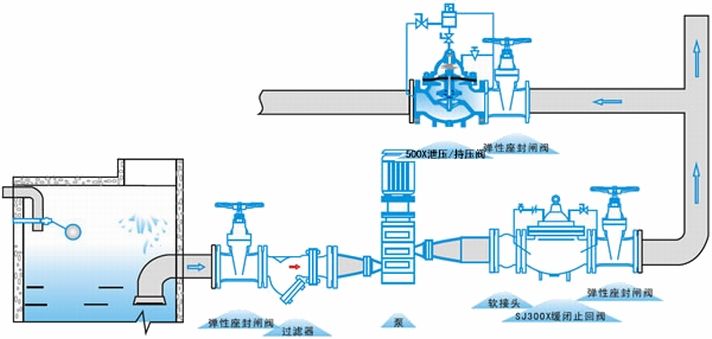 2、作持压阀:当泄压/持压导阀调整为持压状态时,只要主阀进口水压低于导阀设定值,导阀即关闭。主要控制室升压,主阀关闭。