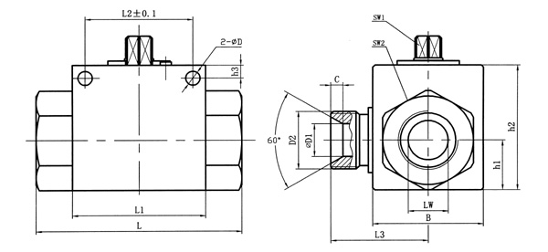 简略型号 PN DN LW RA d1 i L L1 B L2 h1 h2 SW1 SW2 D h3 L3 D1 C