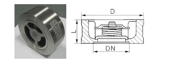 H71H、H71W对夹式止回阀该阀由阀体、阀瓣、弹簧等组成,水平或垂直安装于管路系统,防止介质倒流,具有结构短、体积小、质量轻;阀瓣关闭快速,水锤压力小;流道通畅,流体阻力小;动作灵敏,密封性能好。