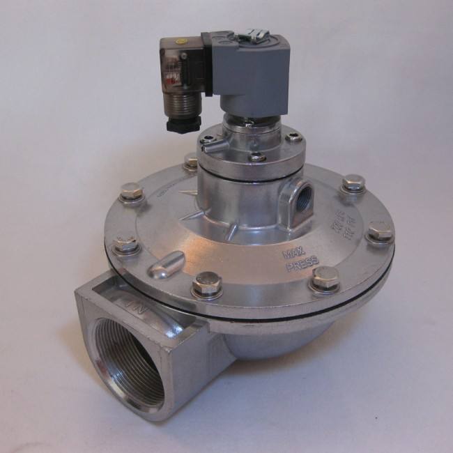 ②直角式电磁脉冲阀:阀体进出口成直角,直接受电信号控制的膜片阀;